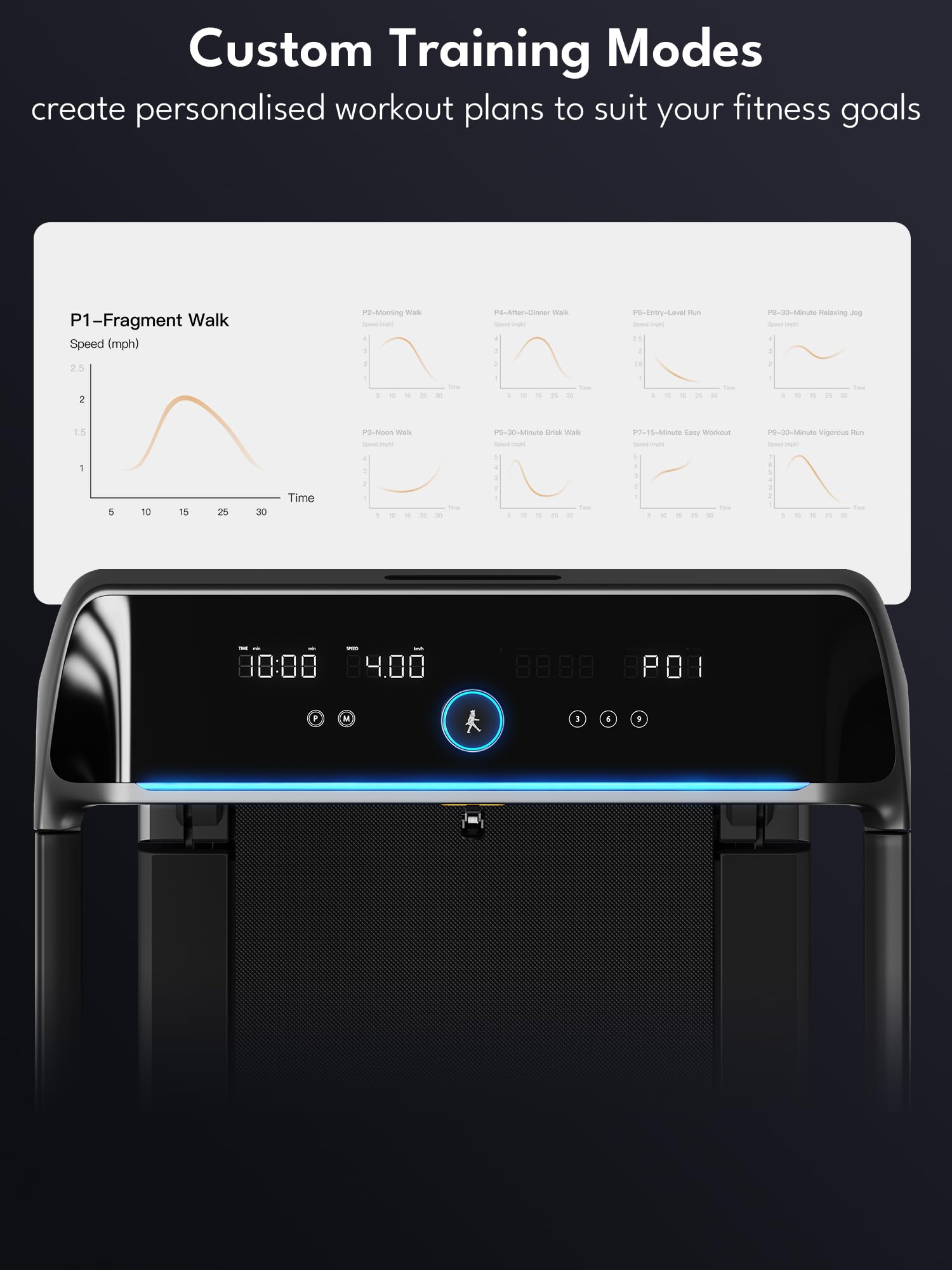 - Personalisierte Trainingspläne: Die X218-Laufbänder für zu Hause lassen sich nahtlos mit der KS Fit App verbinden. Verfolgen Sie Ihre Fortschritte in Echtzeit und setzen Sie ganz einfach personalisierte Fitnessziele. Das Laufband verfügt außerdem über 11 voreingestellte Trainingsmodi (P1–P11), und mit dem zentralen Speed-Dial-Knopf können Sie die Trainingsintensität an Ihr Fitnessniveau anpassen. Egal, ob Sie abnehmen, Muskeln aufbauen oder Ihre Herz-Kreislauf-Gesundheit verbessern möchten – das X218 bietet das passende Trainingsprogramm für Sie.